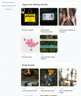 Wakelet needn’t be for academics alone. Collections can be created to support our students’ basic needs and mental health by providing links and pages to university resources. It’s also a fine place to provide encouragement, support, and perhaps a bit of peace. When my kids were tiny and bickering over Transformers and Tinkerbell, I often needed to put on music to work. It struck me that to help our students find their own calming space, why not share the nature sounds and music that helped me?